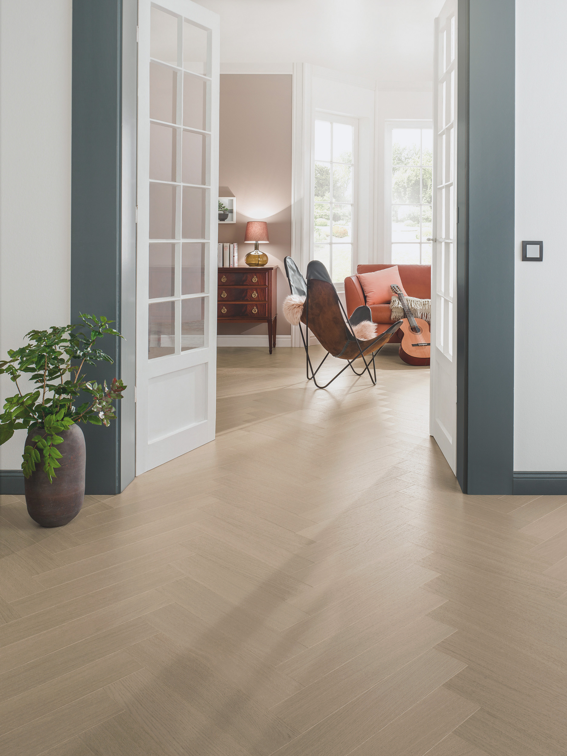 Patterned floors have been around for a long time, but now they are more on trend than ever. Herringbone patterns fit perfectly in both old and modern interiors. This pattern is a classic that is very popular, choose from four different colors that all add their own unique touch to your home. The floor is easily laid using right and left boards with the unifit laying system.